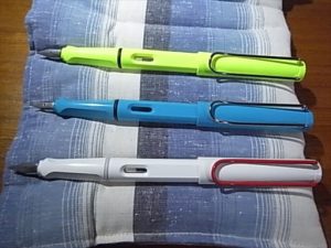 LAMYの“サファリ“ 価格は4320円と万年筆初心者の方にはちょっと手が出しにくい万年筆になりますが、この万年筆は世界中で人気のあるもので、握りやすいように持ち手の部分にくぼみのあるデザインになっています。文字をたくさん書く方からすると“疲れにくさ“は重要になってきます。文字をたくさん書かない方であればこの万年筆でなくてもいいと思います。書きやすさ、疲れにくさはもちろん、この万年筆は極細字・細字・中字と太さを選べるので3本持っておけばシーンに合わせて対応することができます。ちなみにペン先はスチールで、インクの補充方法はカートリッジとコンバーダーの両用式です。